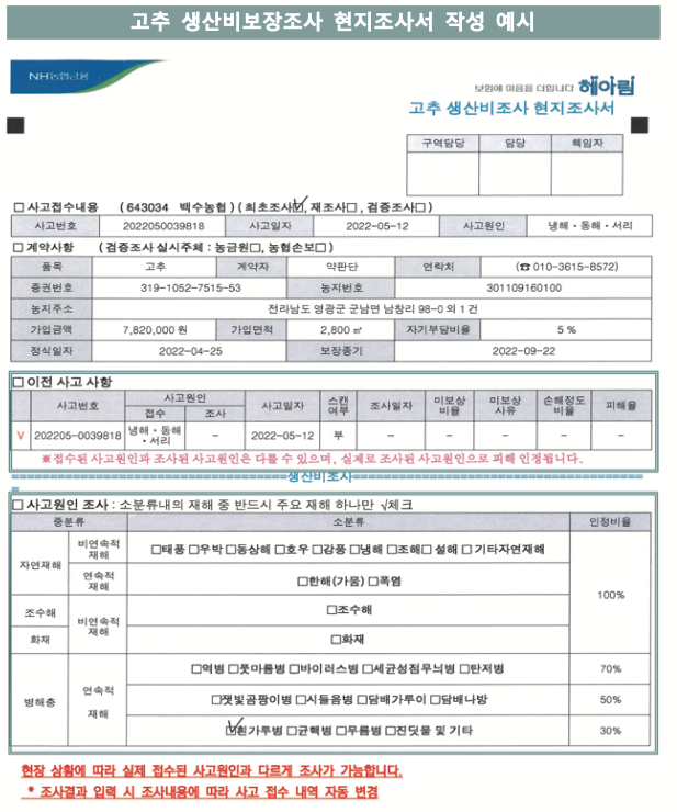 고추 손해조사 방법