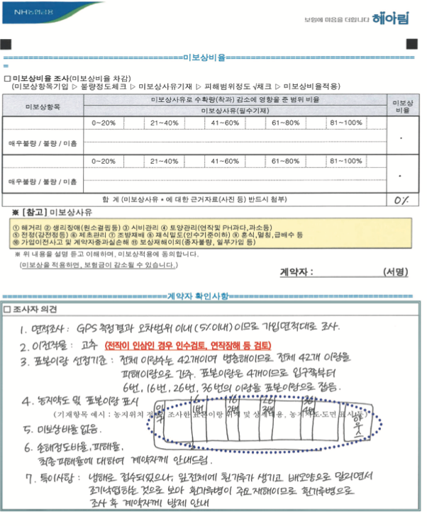 2. 계약자와 간단한 면담을 합니다. (첫 수확일과 수확량 감소 보장이 아닌 생산비 보장임을 설명)