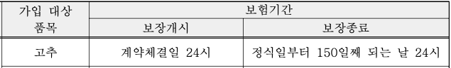 고추 보험기간은