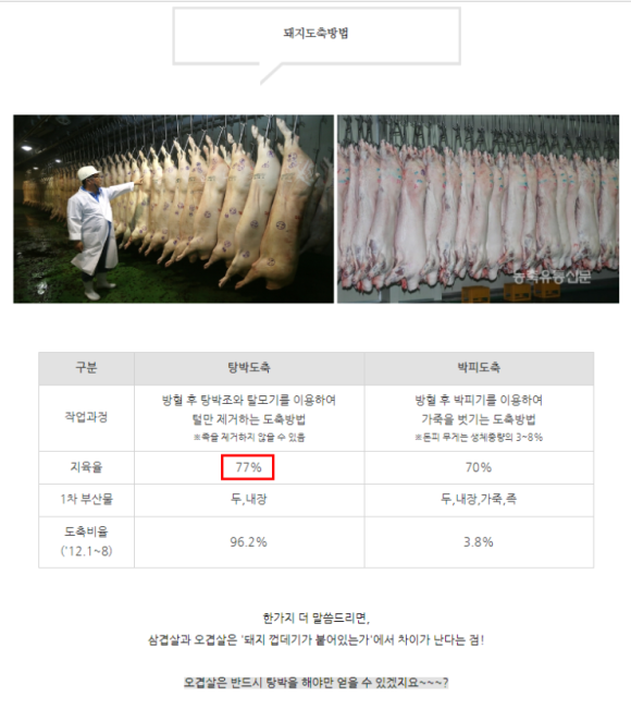 실제로도 탕박도축을 96.2%인 반면 박피도축은 3.8%라고 합니다.