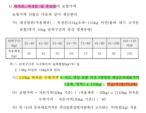 돼지 보험가액을 보면 [110kg 비육돈 수취가격]을 많이 보셨을겁니다.