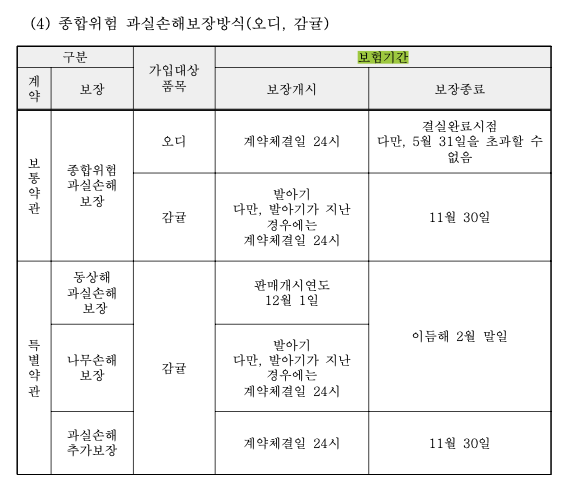 종합위험 수확감소보장방식(밤,참다래,매실,대추,오미자,유자,호두,살구)