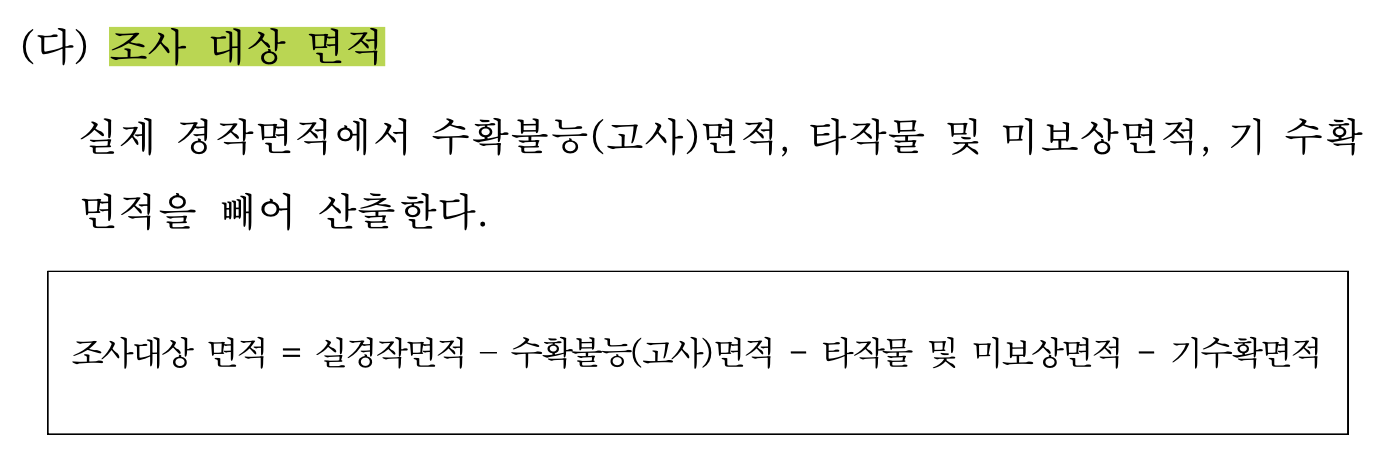해당 표본구간에서 각 구간별로 수확한 작물의 수확량을 조사합니다.
