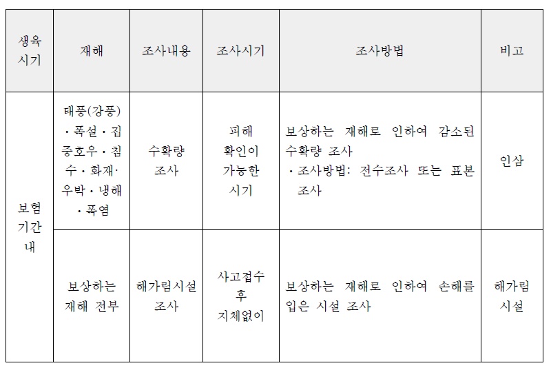 작물특정 인삼손해보장방식 조사종류
