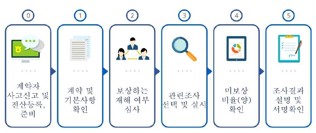 손해평가를 하기위해선 가장 중요한 현지조사 절차가 있습니다. 이부분에서 빠트리면 안되기에 꼼꼼하게 5단계를 알아보겠습니다.