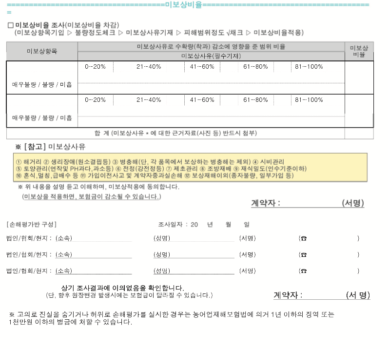 다 확인했으면 가입면적과 실제경작면적을 확인하여 10% 이상 차이시 계약사항 변경입니다.