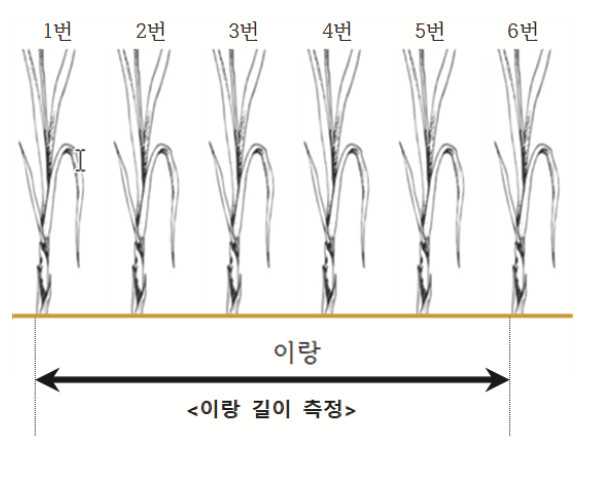 이랑폭은 표본구간별로 5주 이상을 정하여 줄자로 길이를 측정합니다.