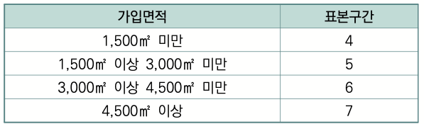 가입면적 대비 표본구간수에 따라서 표본구간을 선정합니다.