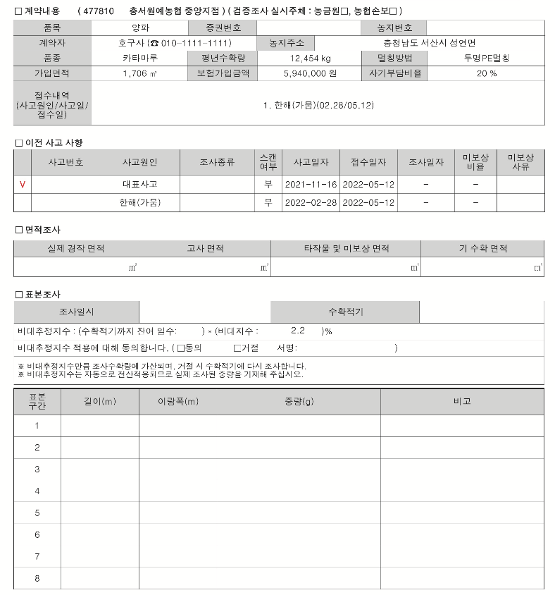 손해평가 양파 수확량 감소조사