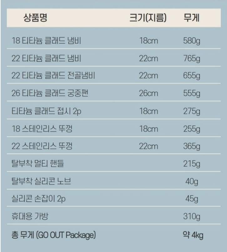 클래딘 티타늄 코펠 세트 고아웃패키지